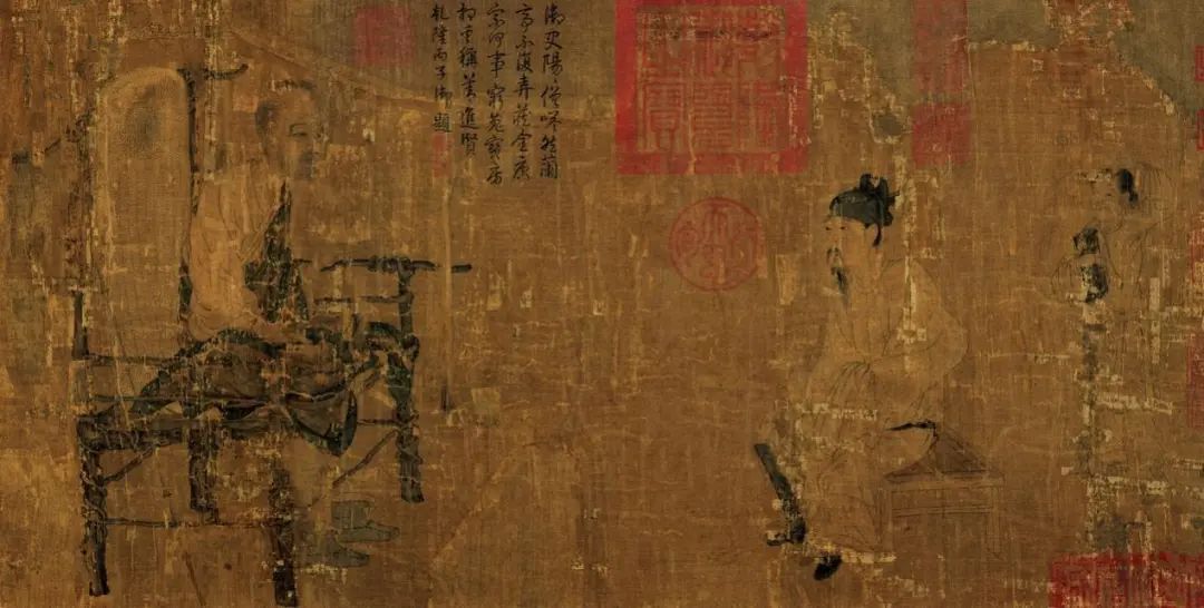 宋代佚名《萧翼赚兰亭图》相似劝诱不少关心。画中本体为唐朝初年御史萧翼从僧辩才手中为唐太宗李世民赚取王羲之《兰亭集序》真货的故事。画中,书生装璜的御史萧翼两手拱于袖间,目力残暴,神态千里稳。盘膝坐在高背禅椅上的老衲满面皱纹,双眉紧锁,花式略显急迫。画面章法布局古朴,东说念主物描绘写实严谨,线条细劲均匀,诚然是宋代模本,但保留了唐代东说念主物画的面庞,是传世几卷模本中画图手段最为精粹的一卷。