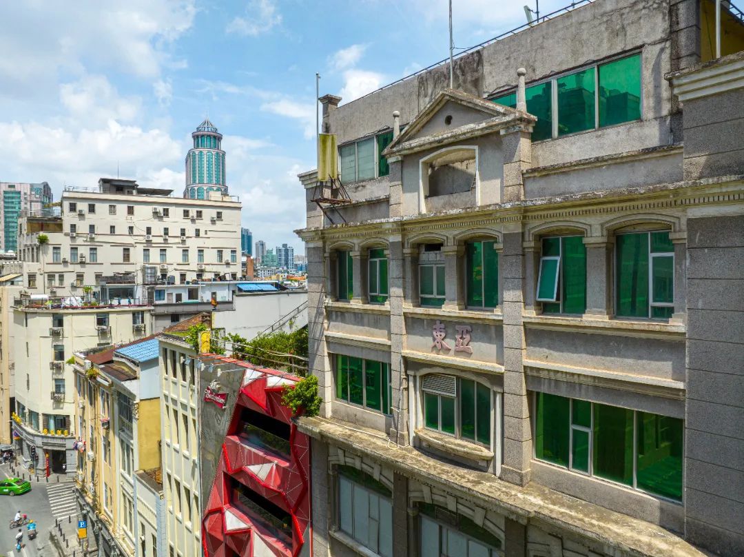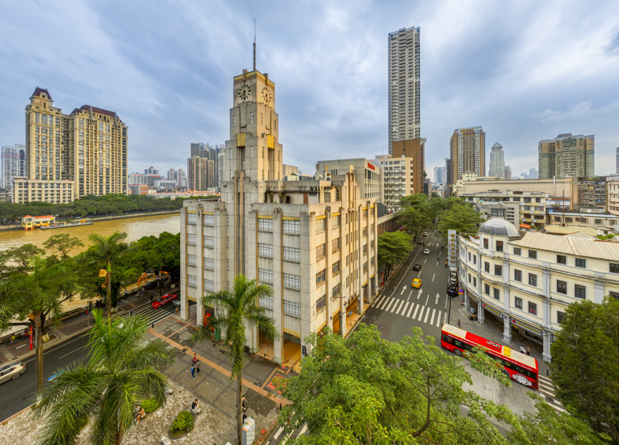 在珠江江畔的东亚大旅舍起飞